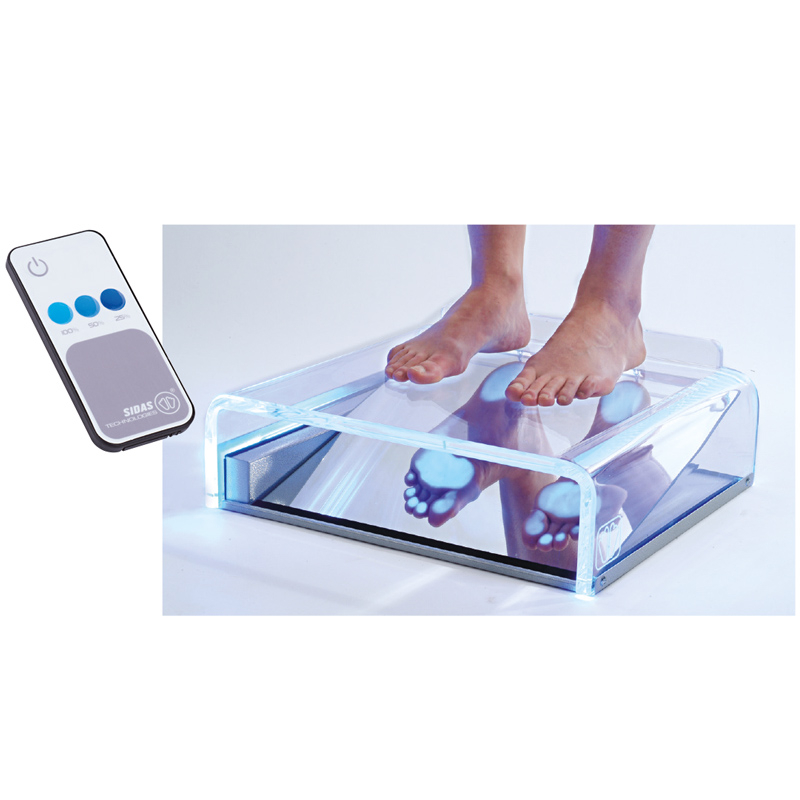 Poskytuje přesné informace díky nasvícení modrým světlem, což zdůrazňuje oblasti tlaku nohou. Zrcadlo může být umístěno vodorovně nebo pod úhlem. Díky své nízké výšce 125 mm snadno přístupný.